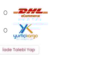 6- Son aşama olarak anlaşmalı kargo şirketlerimizden birini seçin ve "İade Talebi Yap" butonuna tıklayın.