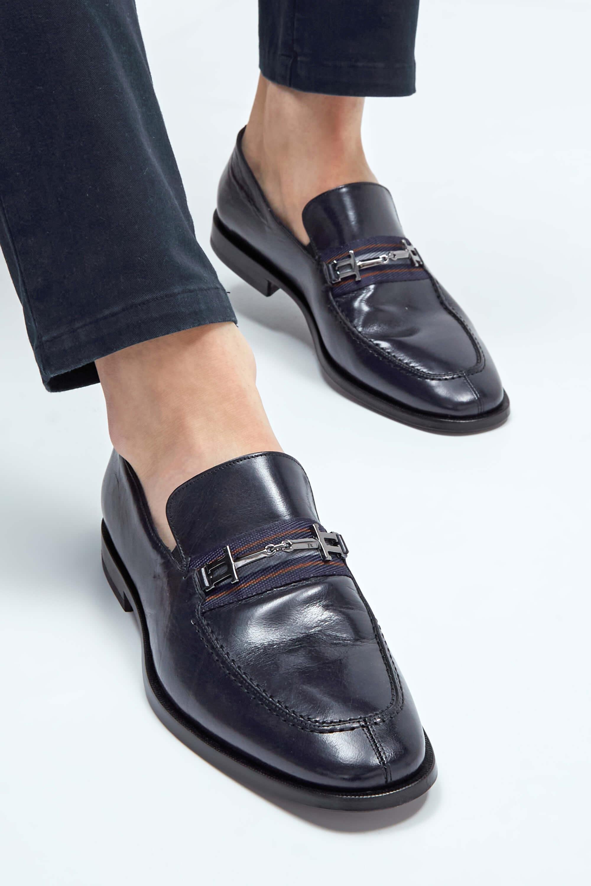 Tamer Tanca Erkek Hakiki Deri Lacivert Makosen Ayakkabı