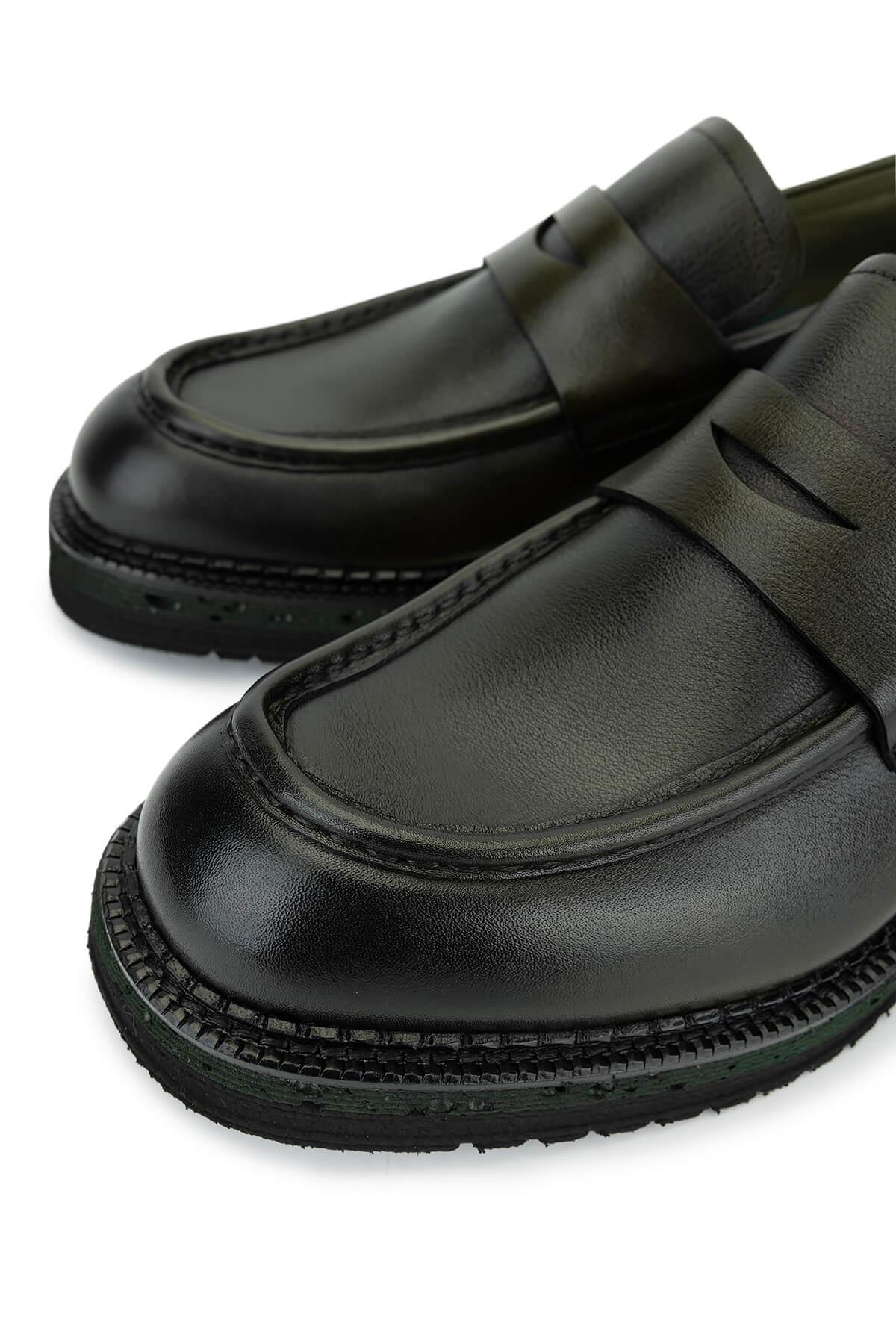 Tamer Tanca Erkek Hakiki Deri Yeşil Loafer Ayakkabı