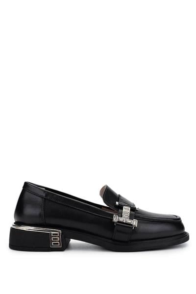 Tamer Tanca Kadın Hakiki Deri Siyah Deri Loafer Ayakkabı