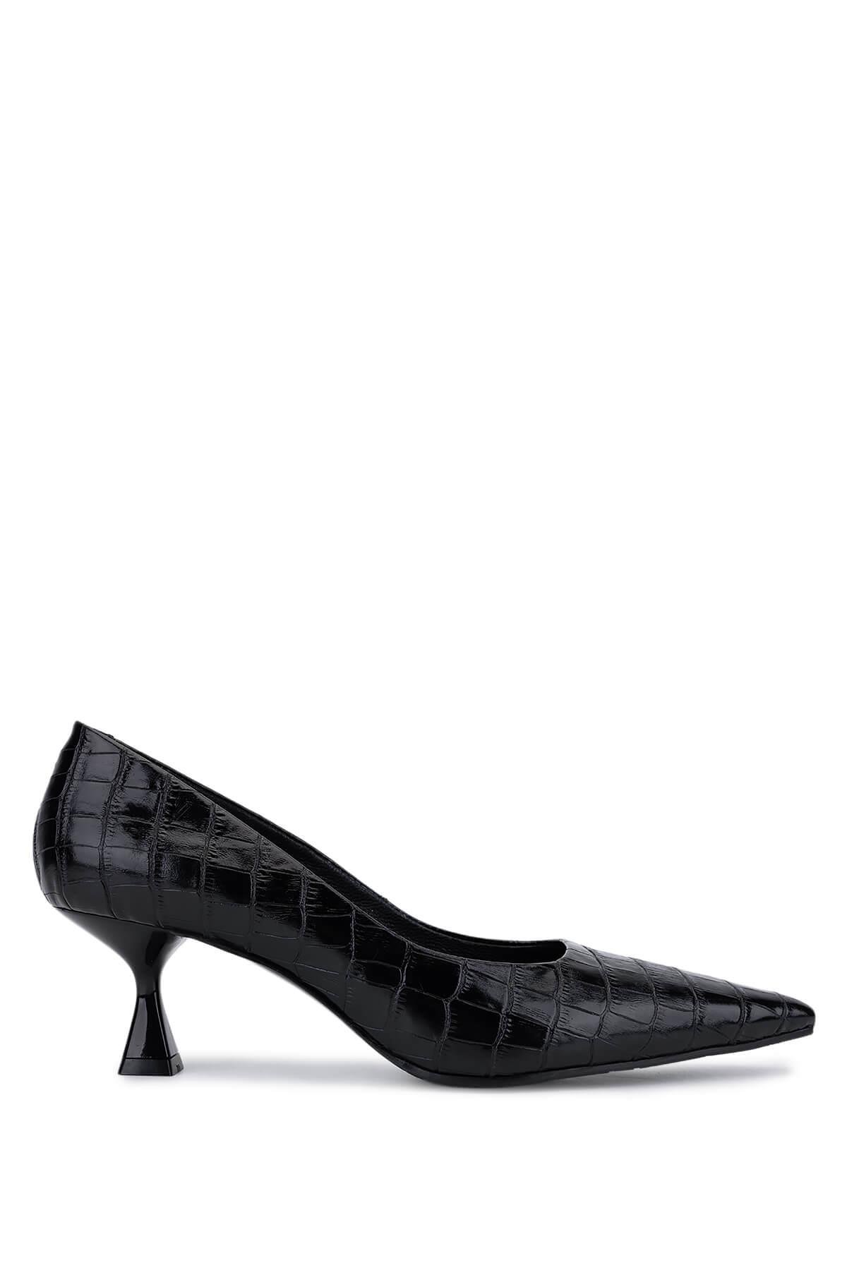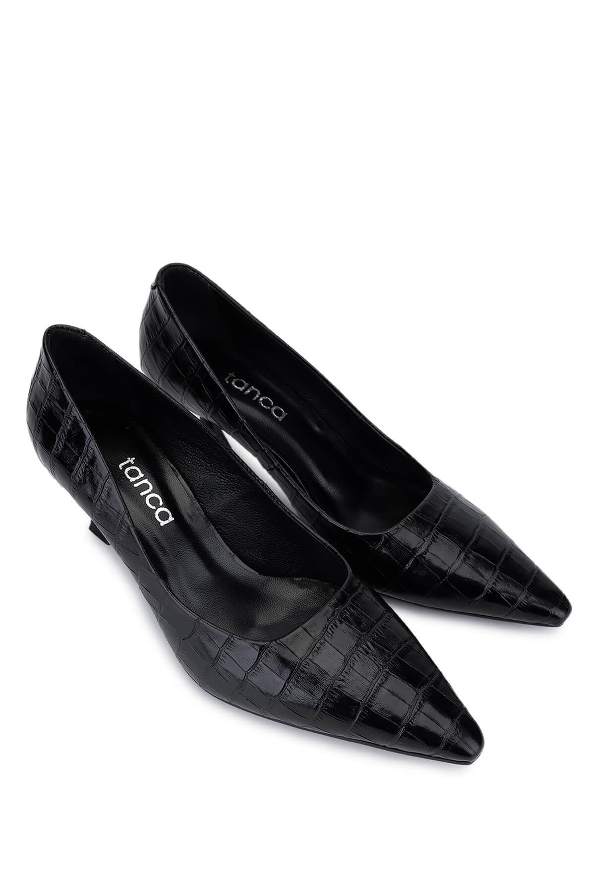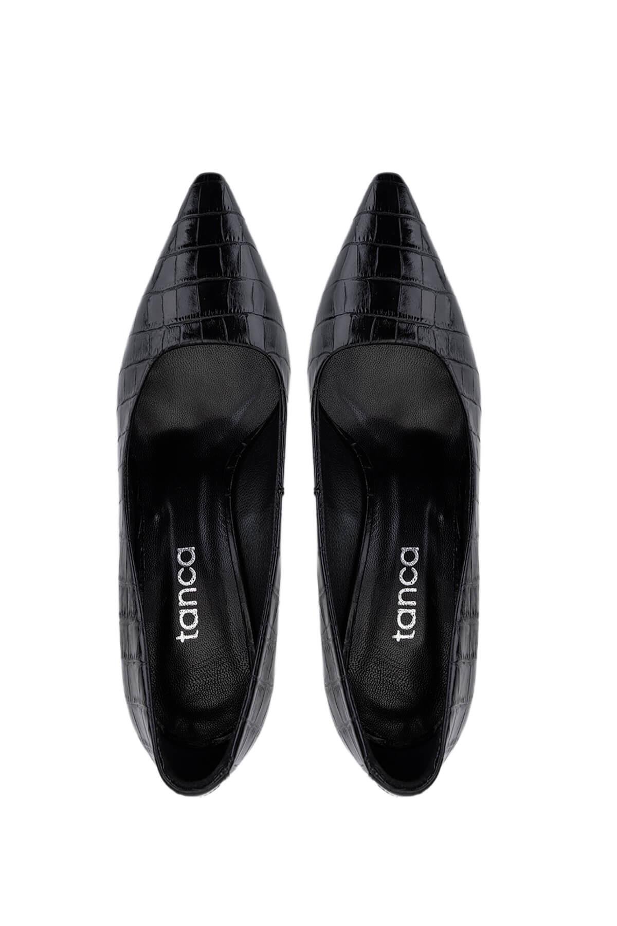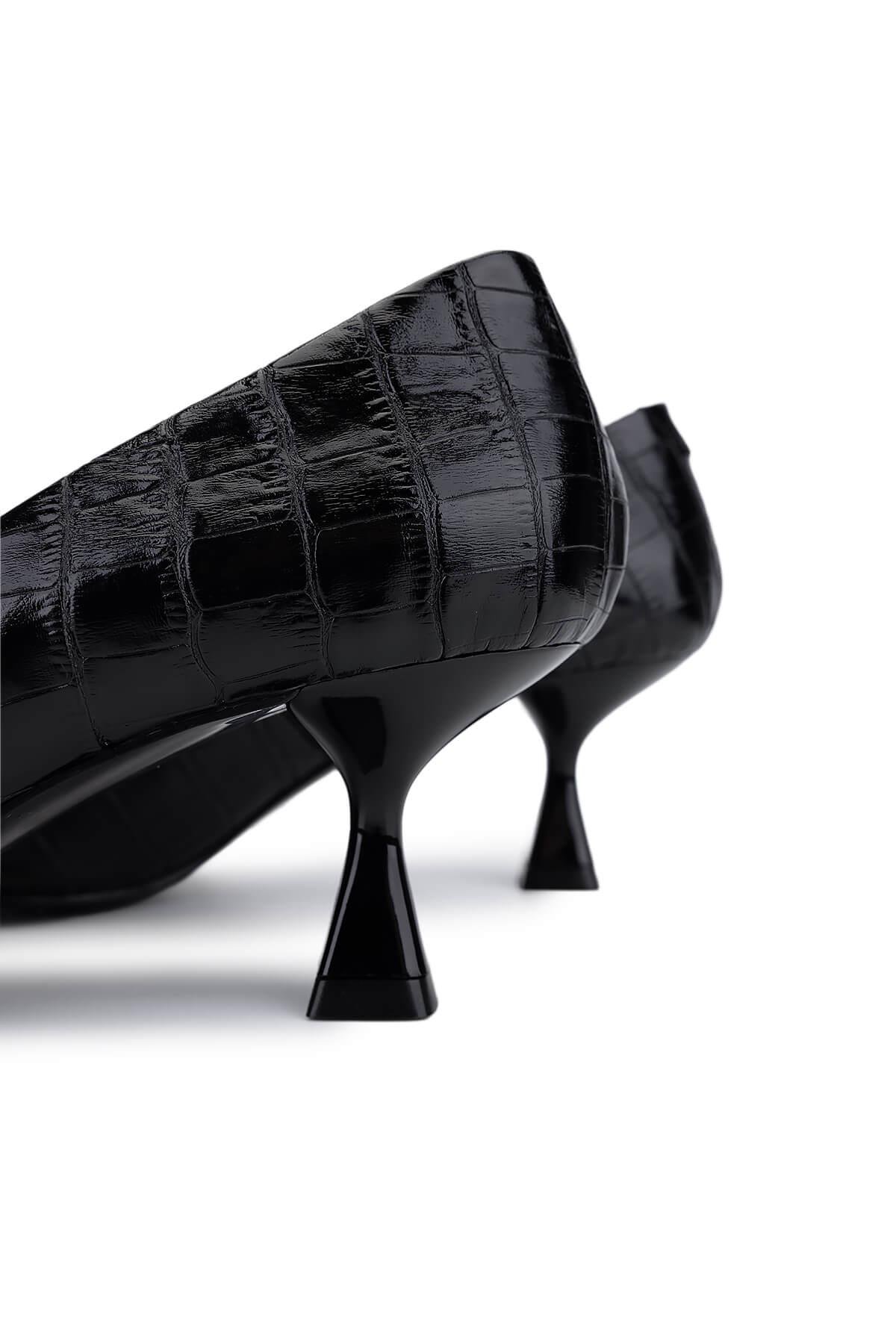 Tamer Tanca Kadın Hakiki Deri Siyah Kroko Topuklu Ayakkabı