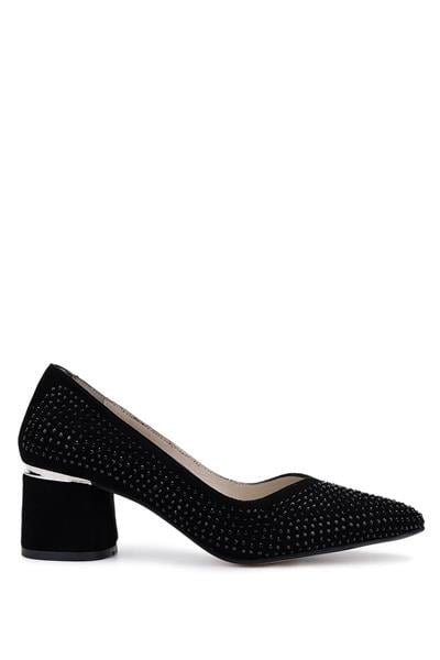 Tamer Tanca Kadın Hakiki Deri Siyah Süet Topuklu Ayakkabı
