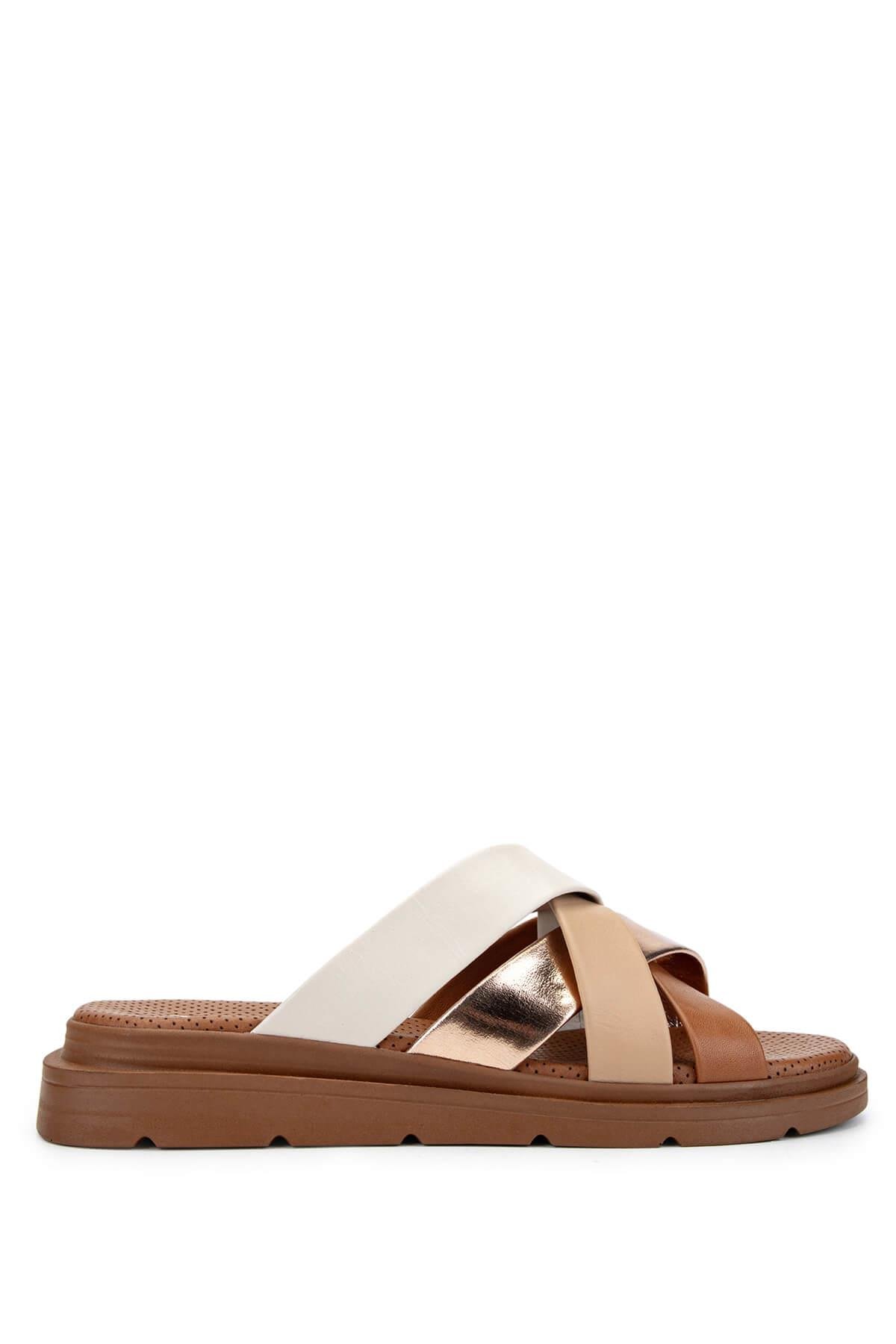 Tamer Tanca Kadın Hakiki Deri Taba Düz Terlik