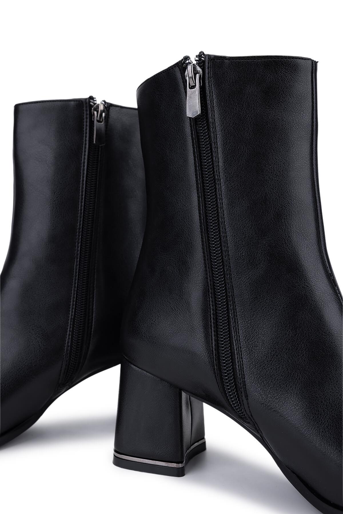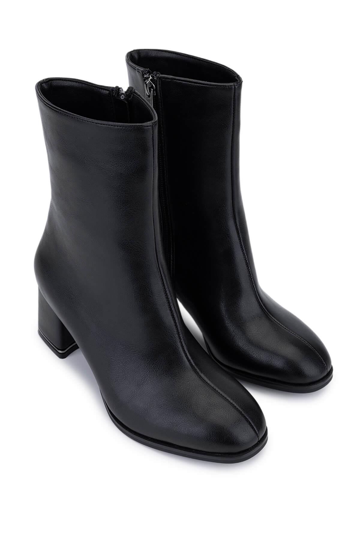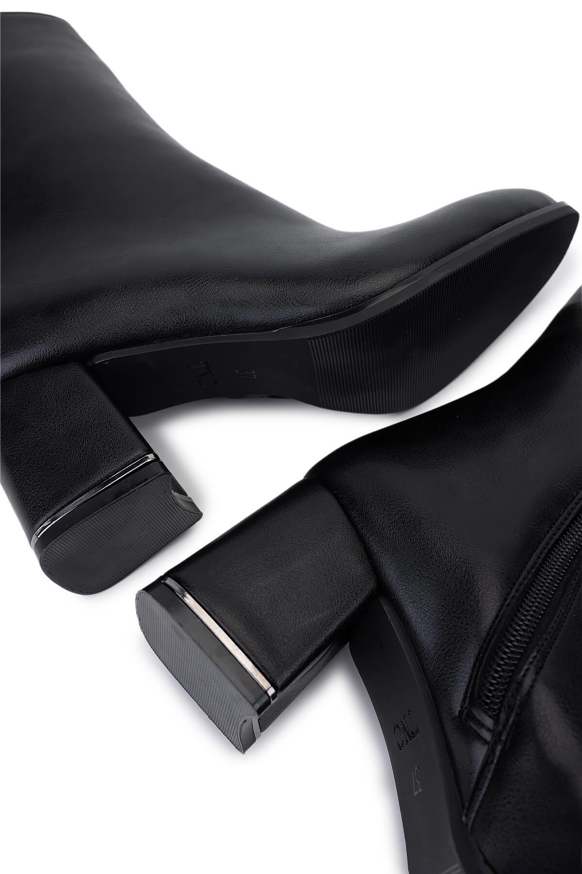 Tamer Tanca Kadın Suni Deri Siyah Deri Topuklu Bot
