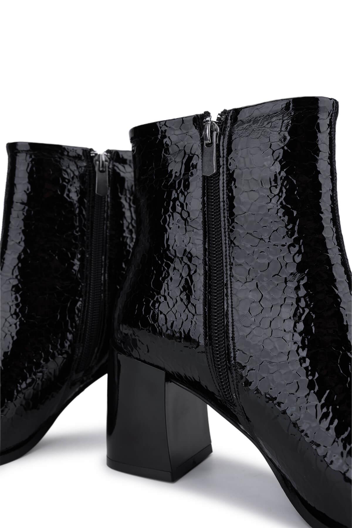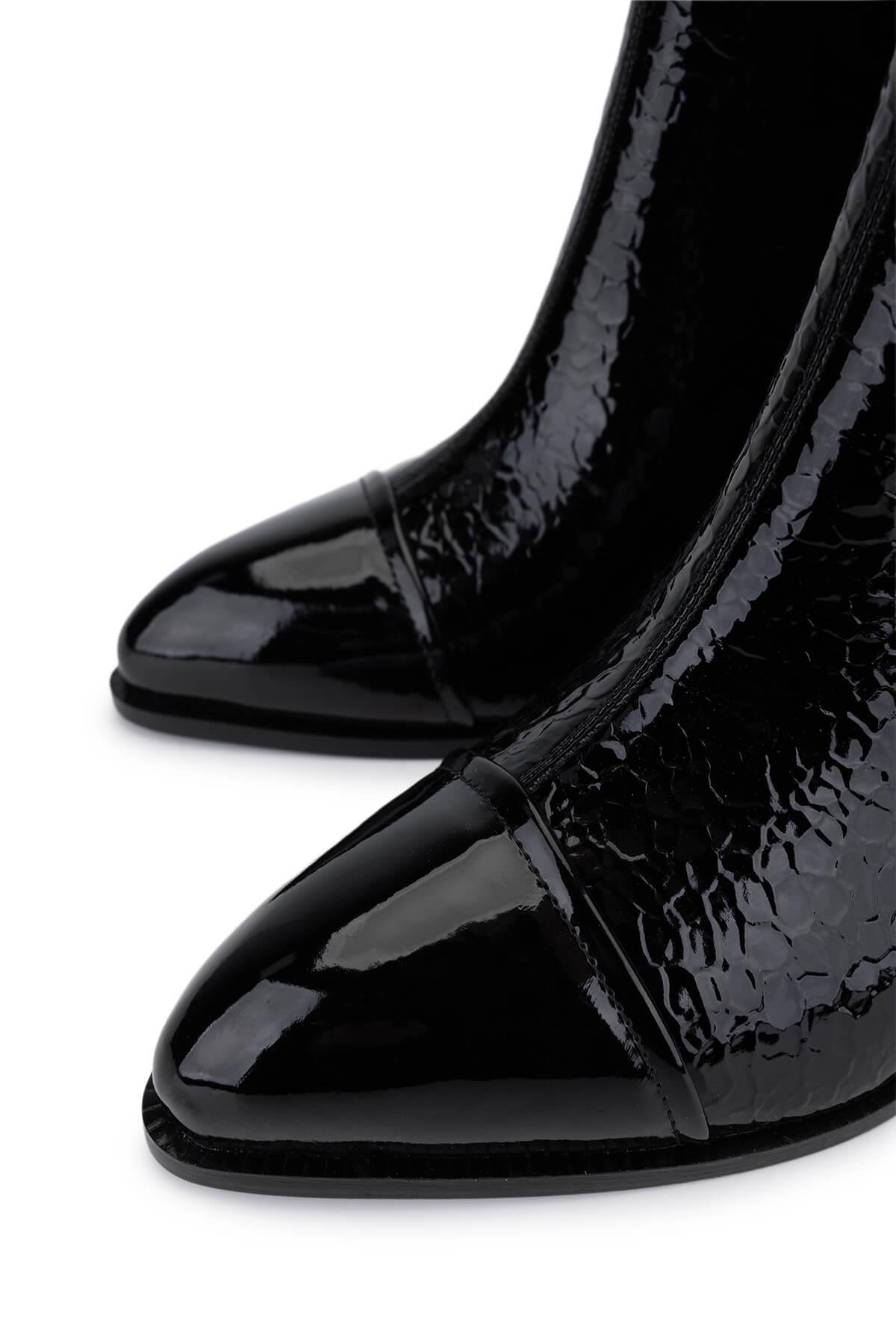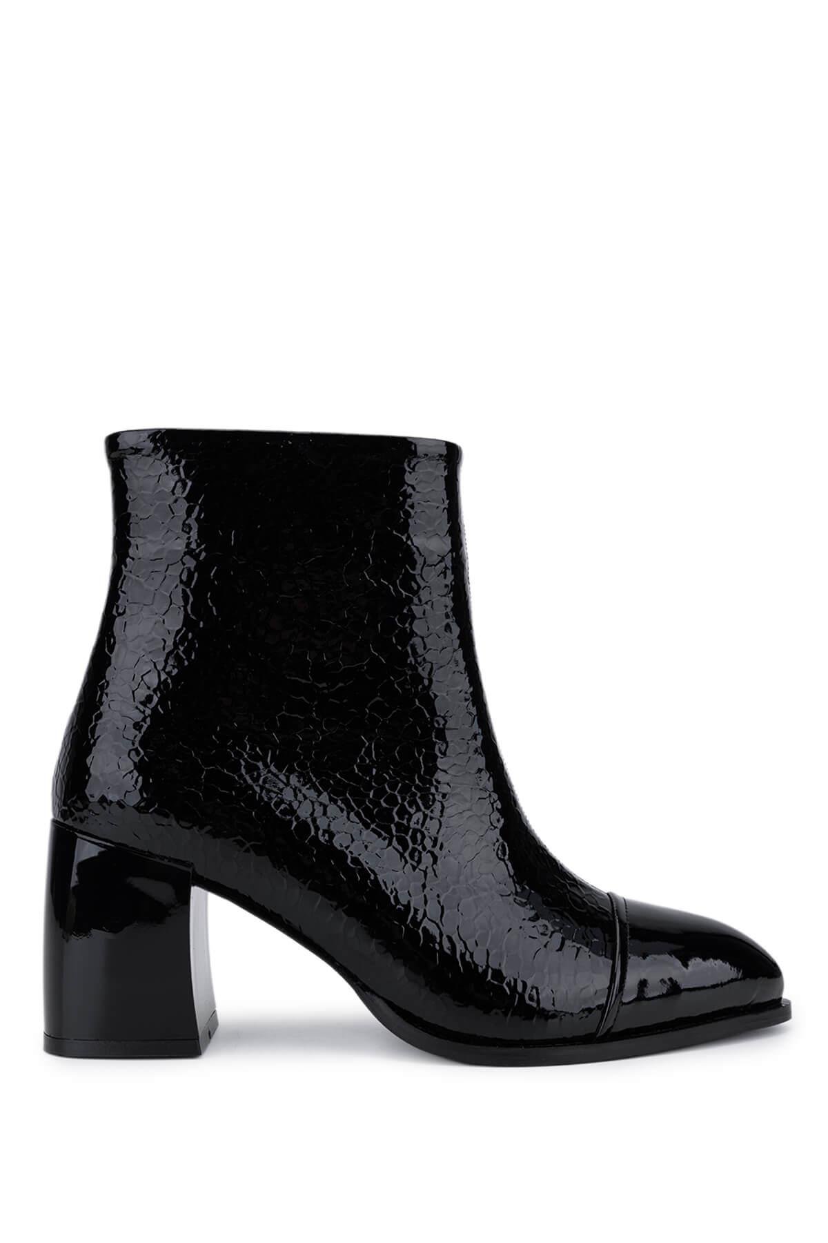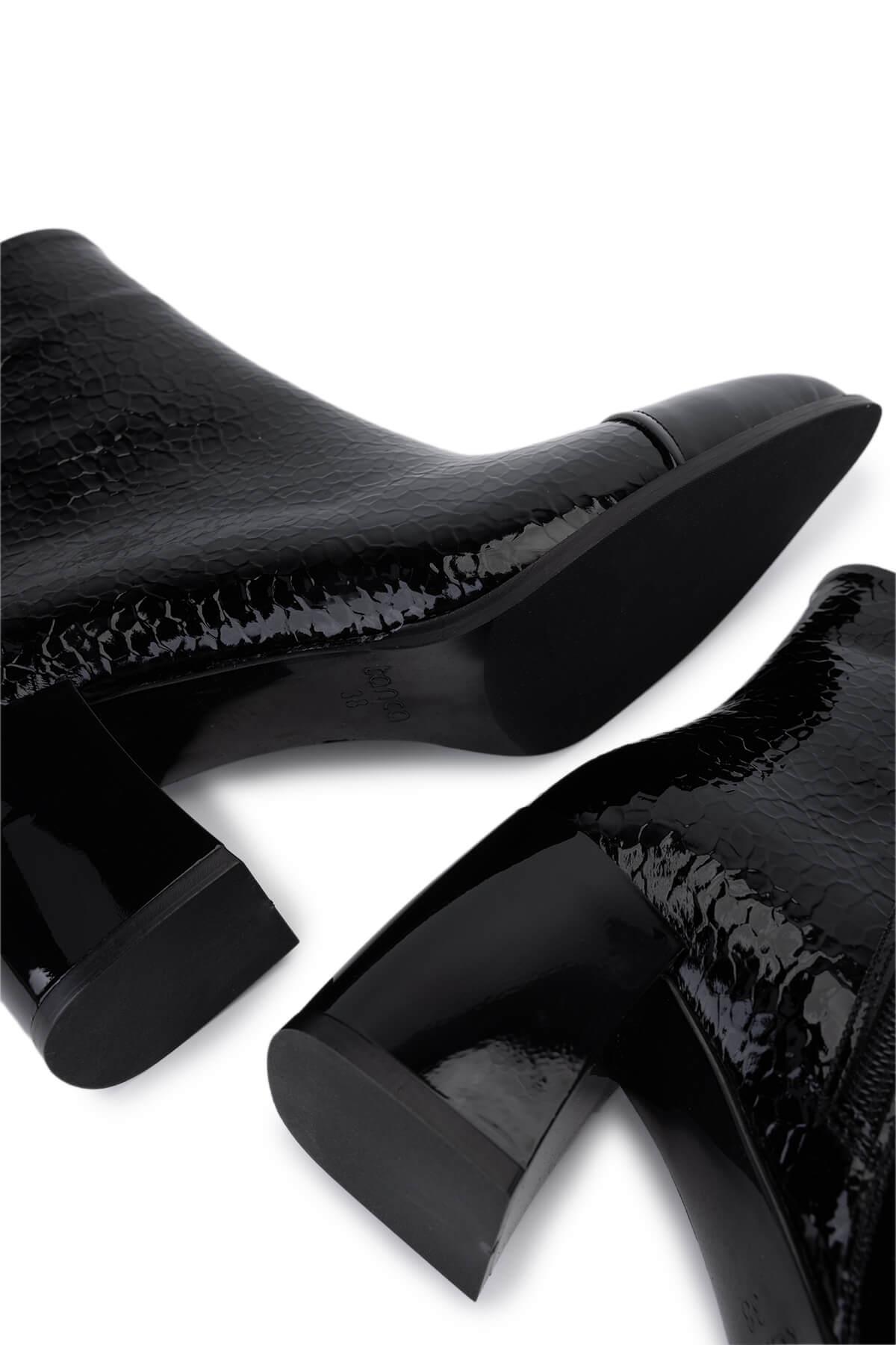 Tamer Tanca Kadın Suni Deri Siyah Rugan Topuklu Bot