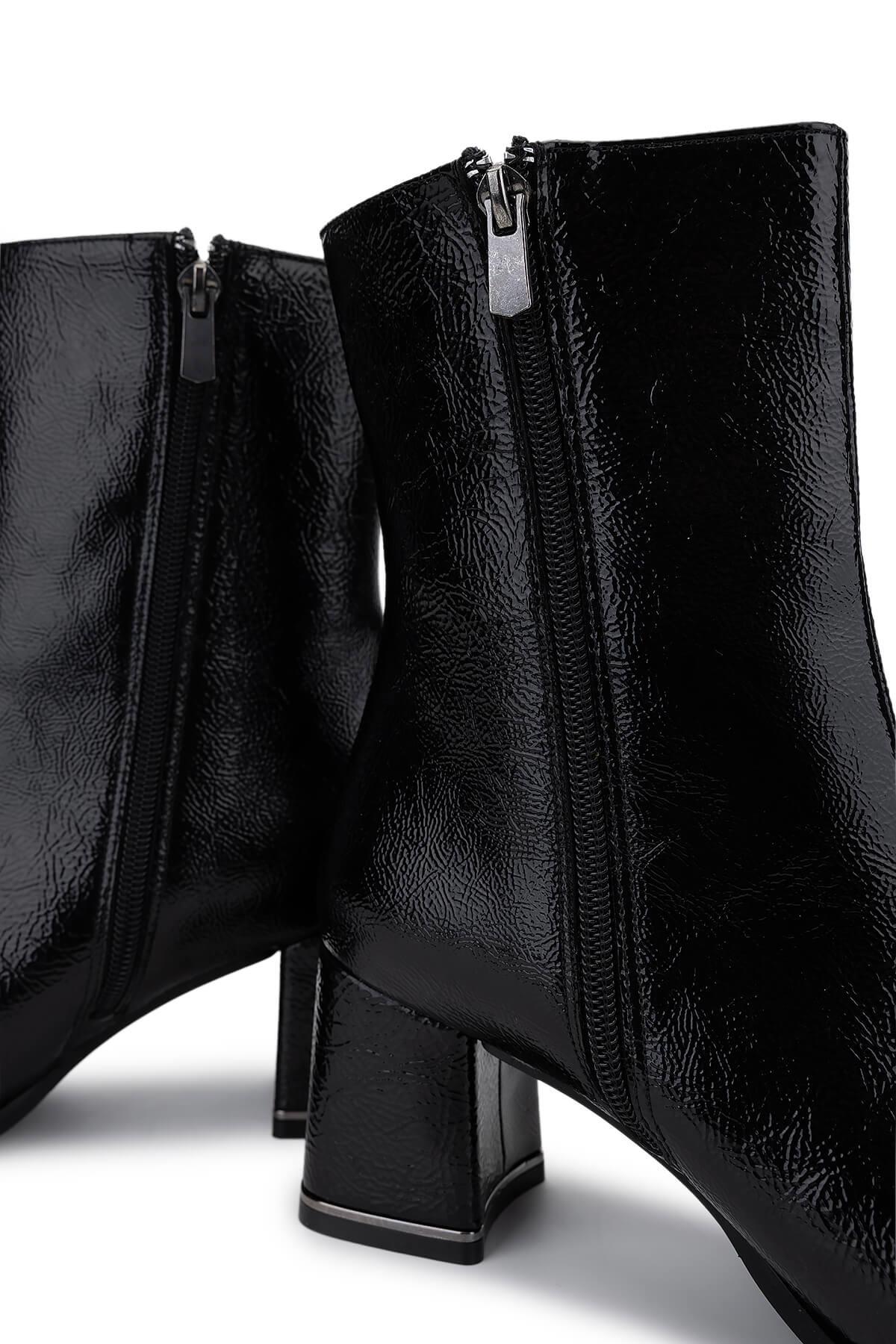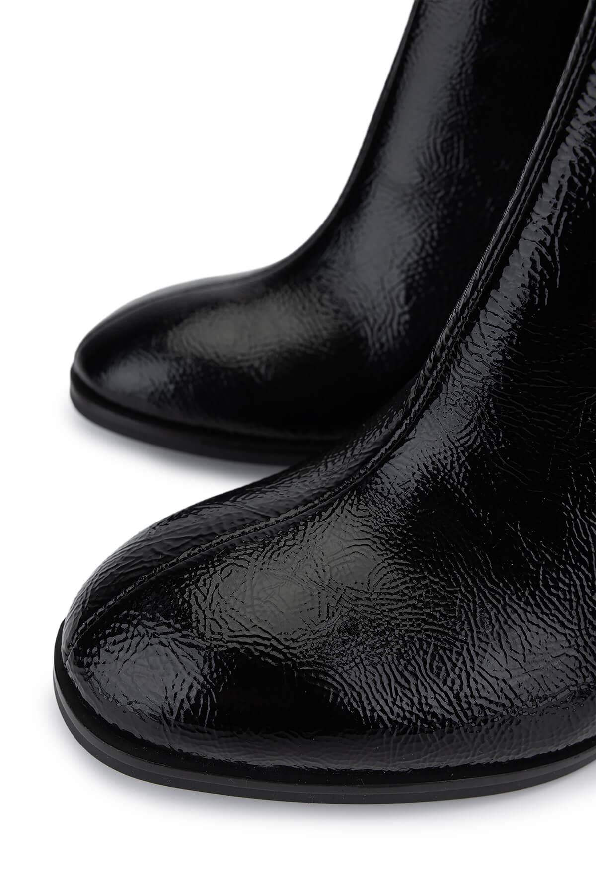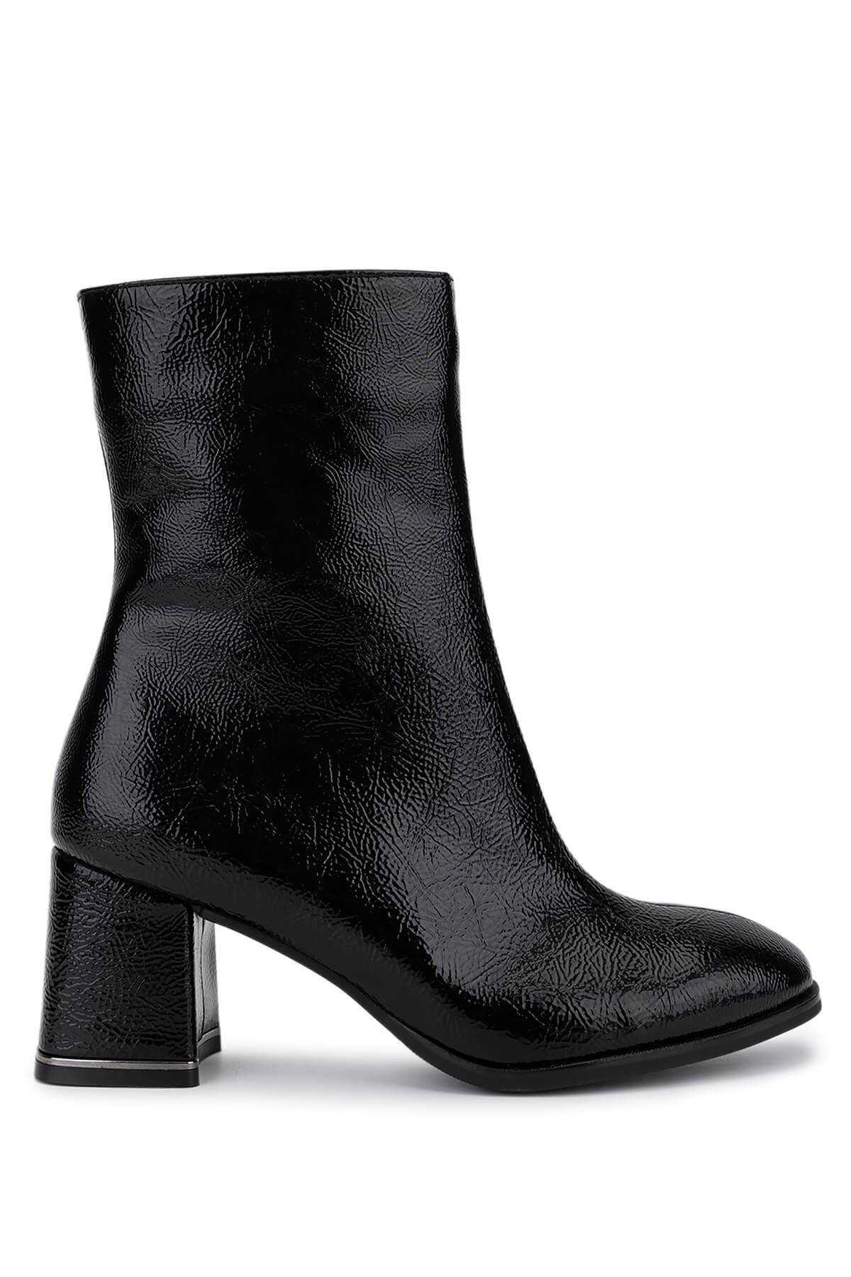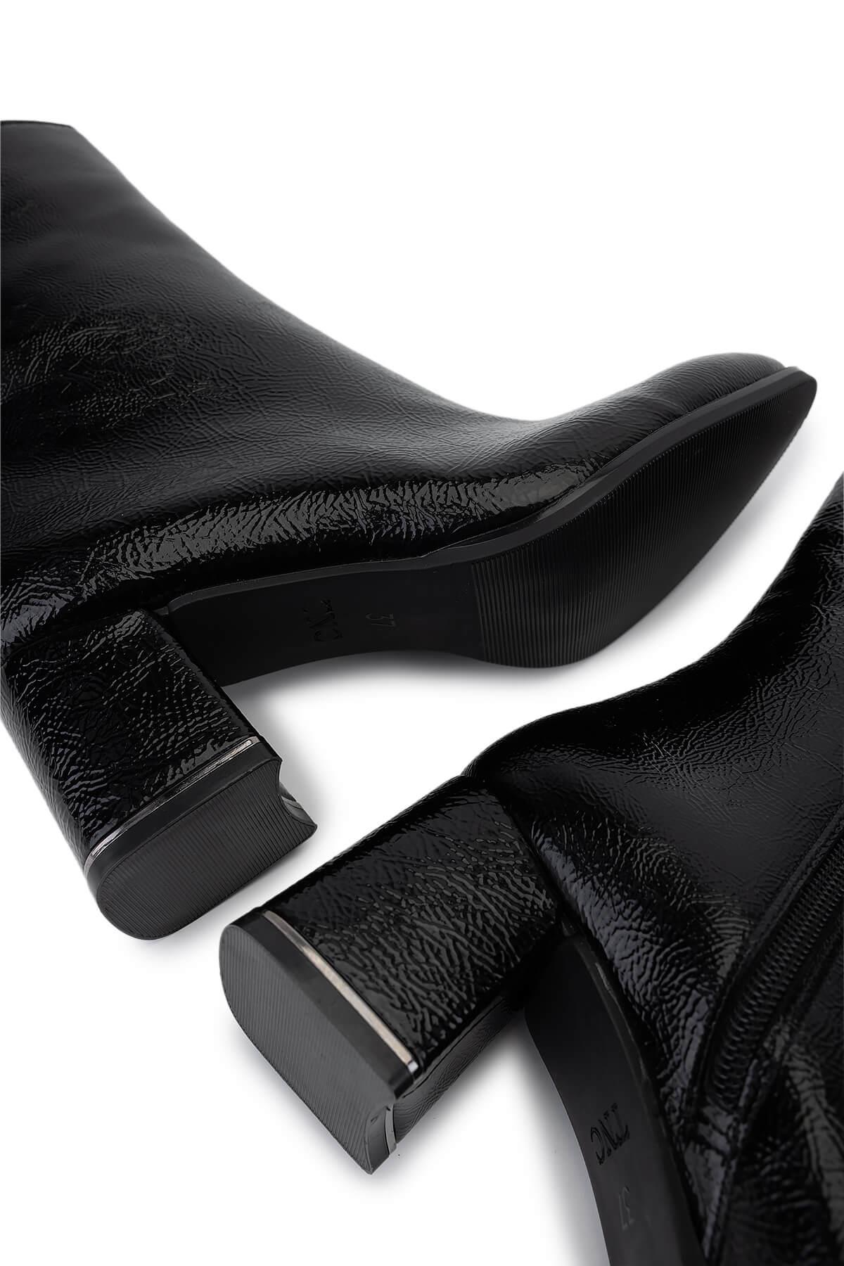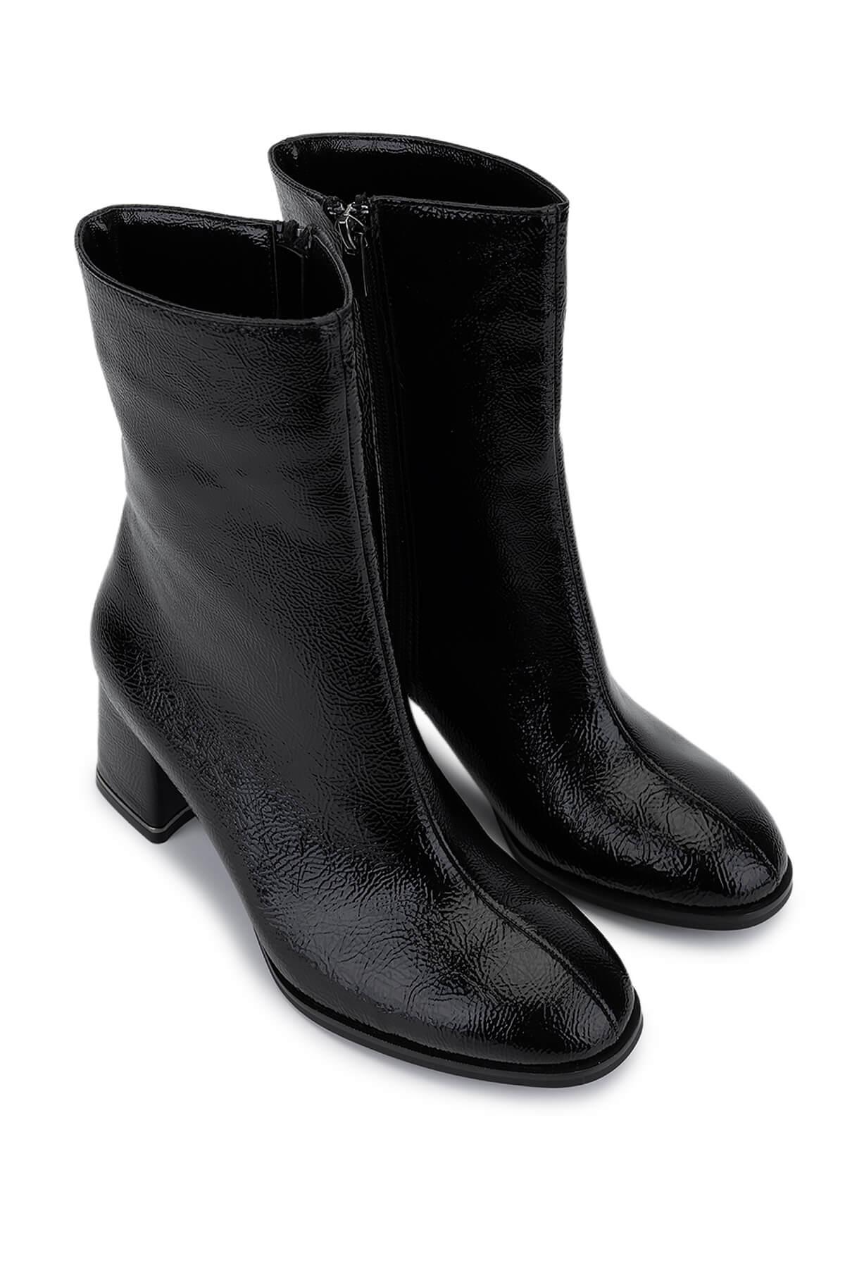 Tamer Tanca Kadın Suni Deri Siyah Rugan Topuklu Bot