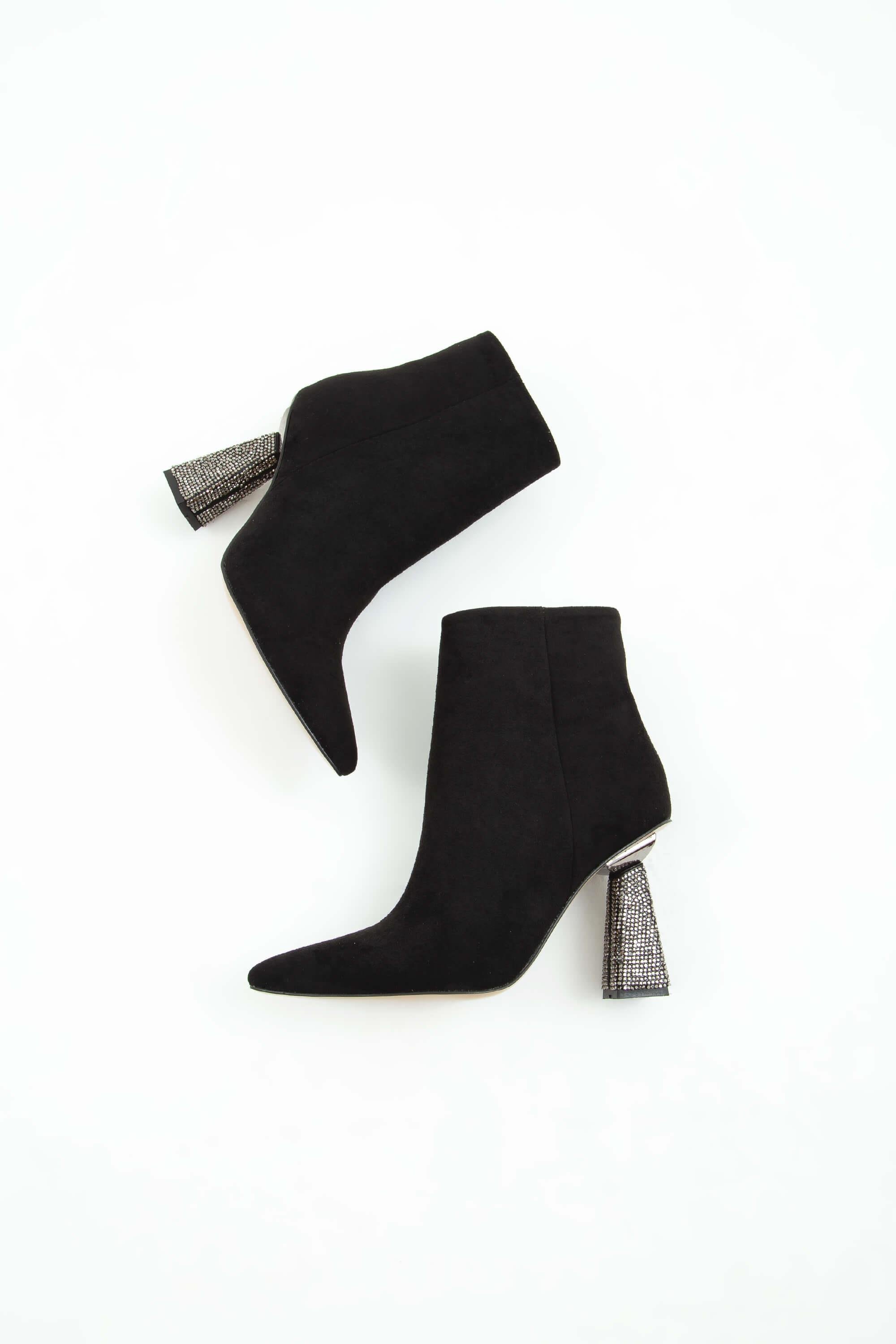 Tamer Tanca Kadın Vegan Siyah Süet Topuklu Bot